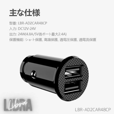 【5個セット】 Libra USB2ポート コンパクトカーチャージャー 4.8A出力 車載用DC-USB充電器 LBR-AD2CAR48CPX5 車用品 【同梱不可】[▲][AS]