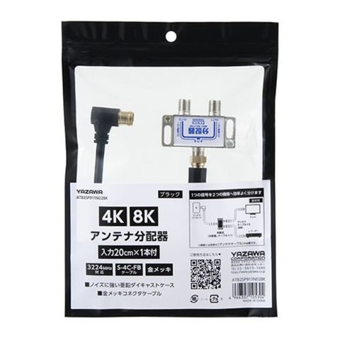 【30個セット】 YAZAWA アンテナ分配器 IN20cm×1本 ケーブル付 黒 ATB2SP911N02BKX30 【同梱不可】[▲][AS]