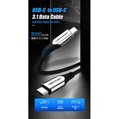VENTION USB-C to USB-C 3.1ケーブル 0.5m グレー TA-7770 【同梱不可】[▲][AS]