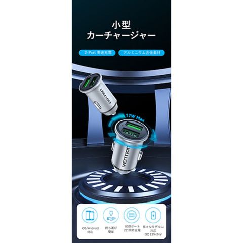 VENTION カーチャージャー 2-Port USB-A + USB-A (18W/18W) グレー FF-8845 カー用品 【同梱不可】[▲][AS]