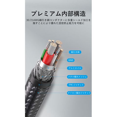 シールド : アルミホイル+メタル編みメッシュ+GND