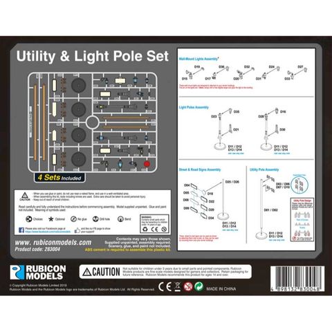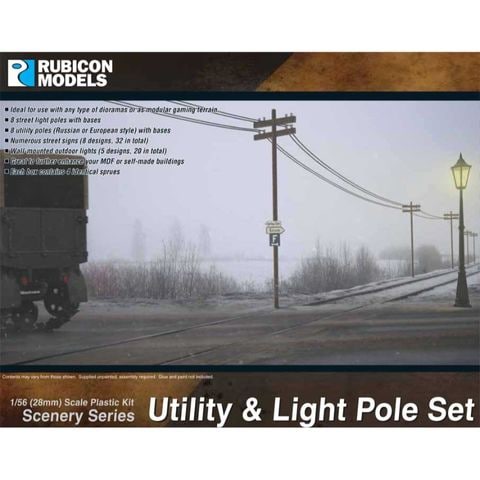 | RB3004 ルビコン 1/56 電柱&電灯セット ミリタリーモデル用インジェクション製 ディテールアップパーツ 1/56スケールの情景作成に役立つ各種キット! 【RB3004】電柱&電灯セット ・8つの土台つき電灯 ・8つの電柱 ・8種計32個の看板 ・5種計20個の壁面灯 |