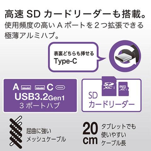 カードリーダー・ライター対応メディア : SD、SDHC、SDXC、microSD、microSDXC、microSDHC、miniSD※、miniSDHC※※miniSD、miniSDHCは、別売アダプターが必要。