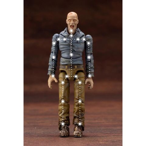 | KP525 ゾンビノイド バイター END OF HEROES プラモデル 手のひらサイズの可動プラモデル新シリーズ「END OF HEROES」始動! 1/24スケールプラモデルで送る新シリーズ「END OF HEROES」! 荒廃した世界観にふさわしいあらゆるアウトサイダーたちを、手のひらサイズのプラモデルでお届けします。小スケールフル可動のキャラクターがあなたのデスクの上で活躍します! ラインナップはゾンビ、野盗、ハンターなどホラー映画やアクション、SF映画で慣れ親しんだモチーフをセレクト。 続々発売されるキャラクターを揃えれば、目の前がまるで映画館に。そう、監督はあなたです! ■調査レポート2:ゾンビノイド バイター 調査の結果、この不可思議なモノのある程度の生態(?)がわかってきた。 1,集団で行動し人間の血肉を求める。 2,獲物にはゆっくりと近づいてゆくが、必ず死角から迫っている個体がいる。 3,生前を大きく上回る力で獲物を引き裂き捕食する。 これらが共通した生態ではあるが、他にも地域により、走る、仲間同士で意思疎通ができる、知能が伺える、等の能力差も見られるようだ。 さぁ、奴らに見つからないうちにここを立ち去るとしよう。 What’s END OF HEROES? 20XX年―― “大いなる救済”による罪過の焔が文明と秩序、そしてその罪さえも焼き尽くし崩壊した世界――。 打ち捨てられた預言書に書かれた審判の日のように死者が目覚め、その悪徳こそが尊ばれる世で聖者は悪徒へ、狩人は血に飢えた狼へと姿を変え、物語の世界でしか存在しえなかったであろう異形の者達が地上を跋扈していた―― メーカー:コトブキヤ(壽屋) 品番:KP525 サイズ:約75mm 商品仕様:プラモデル 【商品仕様】 全高75ミリの手のひらサイズながら全身30カ所の関節が可動します。 首には頭部と接続するボールジョイントの他に、前後に動く軸可動を搭載し、噛みつく姿勢や腹ばい状態での顔を上げるゾンビ特有のポーズを取らせるために頭部を大きく前に出すことが可能です。 肩は大胸筋部分を前に動かせることで可動範囲を広げました。 掴みかかり首に噛みつくことが出来ます。 股関節は上下に可動し太腿を大きく前に出す事が出来ます。 足首関節は縦可動だけでなく左右ロールも出来ますので、 体幹の崩れたゾンビらしいポーズが可能となっております。 手首パーツは死後硬直で引きつった表情をPVC成型で再現しております。 ゾンビノイド バイターには差し替えの胴体パーツが付属し、様々なゾンビシチュエーションが可能です。 背中には3ミリ軸穴を設け、別売りのミニフライングベースを使ってジャンプや吹き飛びなど、ゾンビならではのアクションを取らせることができます。 ゾンビノイドに共通して付属するクリアレッドで成形された血だまりエフェクトパーツはミニフライングベースと接続する事によって台座としてお使いいただける他、ゾンビ映画の再現に活躍します。 本体は4色で成型、組み立てただけでもすぐにゾンビとして遊べます。 パーツ数:1~50 内容物/付属品 【セット内容】 本体×1体 ・オプションパーツ胴体×1個 ・血だまりエフェクト×1個 素材:PVC(非フタル酸)・ABS 原型制作:株式会社ユニテック 発売時期:2022年03月 作品名:END OF HEROES スケール:1/24 ※画像は試作品です。実際の商品とは多少異なる場合がございます。また撮影用に塗装されております。 |