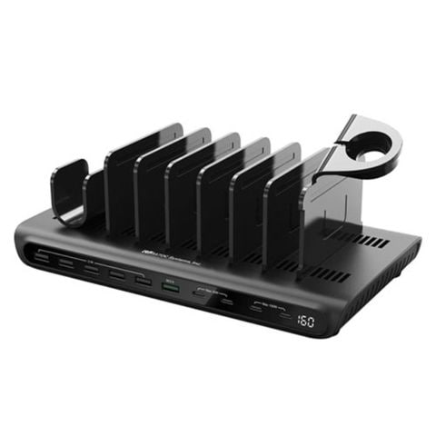 スマホ、タブレット、ノートPC、ワイヤレスイヤホン、スマートウォッチ、モバイルバッテリーなどをすっきりと収納し、まとめて充電することができます。