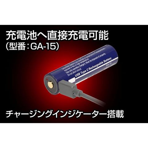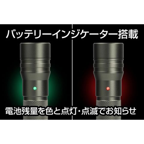 バッテリーインジケーター:電池容量低下による充電必要時に赤色点灯でお知らせ。
