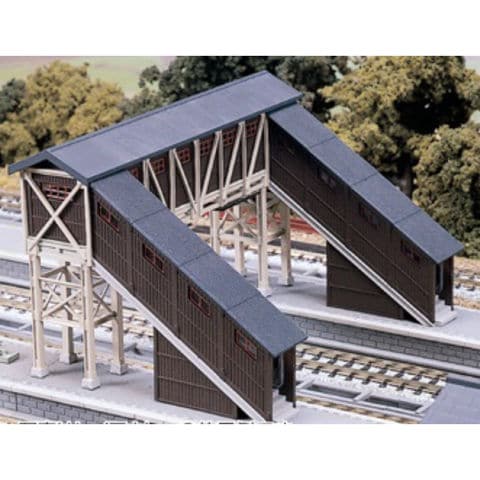| 23-224 跨線橋(イージーキット) Nゲージ 鉄道施設 鉄骨ビームの主構造に、木製羽目板の壁というよく見られたタイプの跨線橋です。電化区間用、非電化区間用のいずれかの形態を選択することができます。 |
