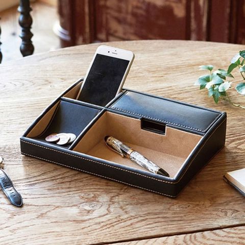 携帯電話、時計、メガネや鍵、コインなどを一手に収めておけます。