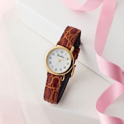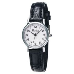 すっきりとしたフェイスで見やすい婦人用腕時計。