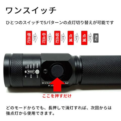 ・モード : 5モード(強→中→弱→点滅1→点滅SOS)