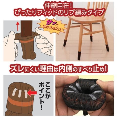 旭電機化成 ズレにくいイス脚カバー 4脚用 ブラウン 8118383 インテリア 【同梱不可】[▲][AS]