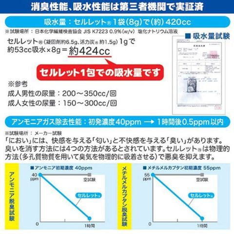 凝固・脱臭剤 : 高分子ポリマー・ヤシ殻活性炭・水溶紙