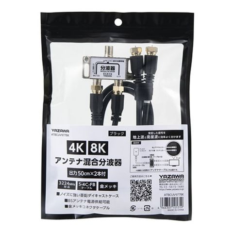 YAZAWA アンテナ混合分波器 OUT50CM×2本 ケーブル付 黒 ATBCUV977BK 【同梱不可】[▲][AS]