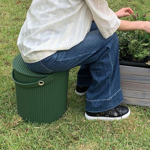 収納BOXとして、簡易スツールとしても使える万能バケツです(耐荷重約150kg)。