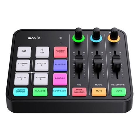 パッド部分にはボイスチェンジ、エレクトリック、デノイズ、カラオケ、ボリュームシェイパーなどの音声エフェクトに加え、ライティングパターン変更や48V給電、ループバック、録音した音声を呼び出すカスタムスイッチを搭載しライブ配信をサポートします。