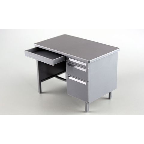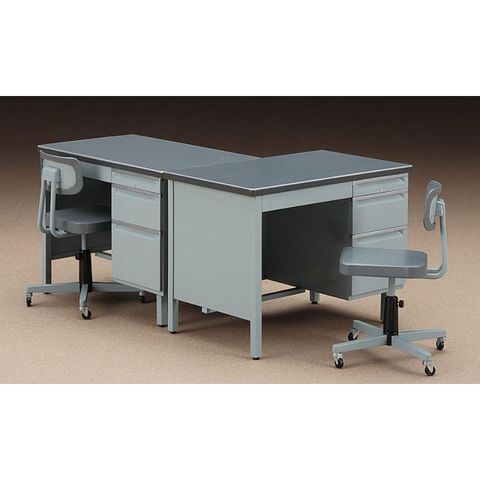 | FA03 オフィスの机と椅子 パーツ アクセサリー 事務用机(H:64.6mm、W:88mm)と 事務用回転式椅子(H:66.5mm、W:54.8mm)の組立キット。 内容は、机1卓と椅子1脚のセットになります。組立は接着剤不要。 成形色はグレー濃淡2色と黒の3色で、塗装しなくても雰囲気ある仕上がりです。 1/12可動フィギュアにフィットする様に寸法をアレンジしてあります。 左上の大きな引出しは開閉差し替え式となります。 その他の引き出しは閉じた状態のみの再現です。 |