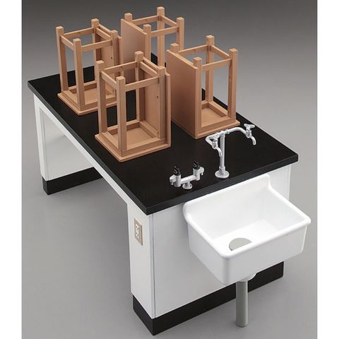 | FA04 理科室の机と椅子 パーツ アクセサリー 学校の理科室より、理科実験用作業机(水道蛇口・流し台・ガス栓付き)と 木製椅子を組み立てキット化! キット内容は机1卓と椅子4脚のセットになります。 成形色はブラック、ホワイト、グレー、ブラウンの4色で、 塗装しなくても雰囲気の良い仕上がりとなります。組み立ては接着剤不要です。 こちらの製品は厳密なスケールモデルではなく、 1/12可動フィギュアにフィットする様に寸法をアレンジしてあります。 |