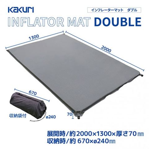 角利産業 KAKURI インフレーターマット 7cm厚 半自動的に空気が入る・アウトドアから災害時に ダブル 200×130×7cm KKR86099 【同梱不可】[▲][AS]