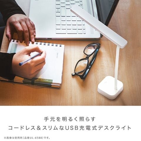 コードレス&スリムなUSB充電式デスクライト USB充電式で災害時にも使用でき、軽量で携帯可能。 連続点灯時間 約5.5時間(MAX点灯時)