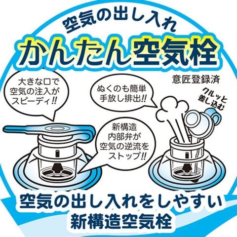 空気注入・排出がしやすいかんたん空気栓が採用、すばやく膨らませ、後片付けもラクチン。