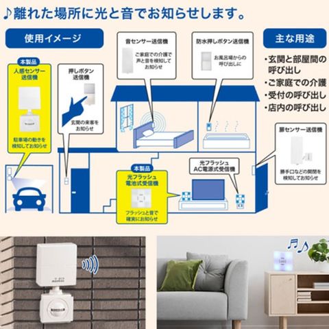 ■玄関と部屋間、受付、店内の呼び出し、ご家庭での介護に適しています。