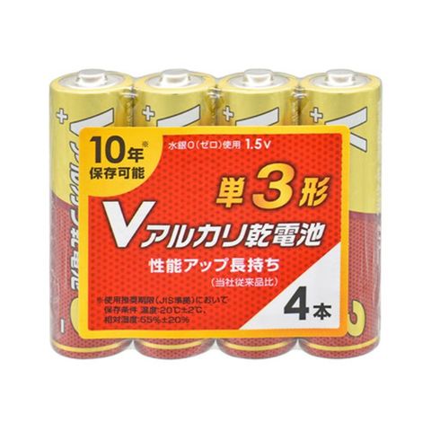 オーム電機 Vアルカリ乾電池 単3形 4本パック 08-4124 LR6VS4P 【同梱不可】[▲][AS]