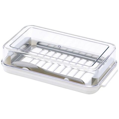 内容物 : 19×10.7×4.8cmバターケース1個・本体…ポリプロピレン・蓋…AS樹脂・バターカッター、バターナイフ…ステンレス鋼・バターナイフ1本付