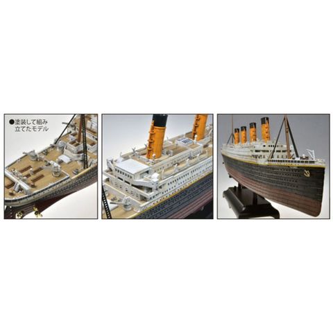 | 凄!プラ船舶 1/700 R.M.S.タイタニック LEDセット 乗り物 凄!プラモデルの第21弾(船舶シリーズ第1弾)です。 このモデルの特長は・・・実物に近いカラーで成形され、塗装しないで組み立て、ステッカーを貼るだけでリアルなモデルが作れます。 ただ、組み立てには接着剤が必要です。 タイタニックは、イギリスの豪華客船で北大西洋航路用に計画されたもので、1911年5月に進水、翌年3月に竣工しました。 速さよりも設備の豪華さに重点を置いて設計されており、まさに一流ホテルに匹敵する贅沢さを備えていました。 また、安全対策にも力が入れられており、船底は二重底になっていて、16の防水区画のうち2区画が浸水しても沈没しない構造になっていました。 けれども、処女航海中の1912年4月14日、北大西洋上で氷山に接触、翌日未明にかけて沈没してしまったのです。 これは、当時世界最悪の海難事故となりました。 キットは、LEDでライトアップが可能になっています。 電池ボックスを内蔵するディスプレイ台が付属、単4乾電池2本は別にお求めください。 ■マーキングはデカールとステッカー付き ■完成時サイズ 全長382mm、全幅40mm スケール :1/700 箱サイズ :W458xD210xD59 mm JAN:4975406412794 |