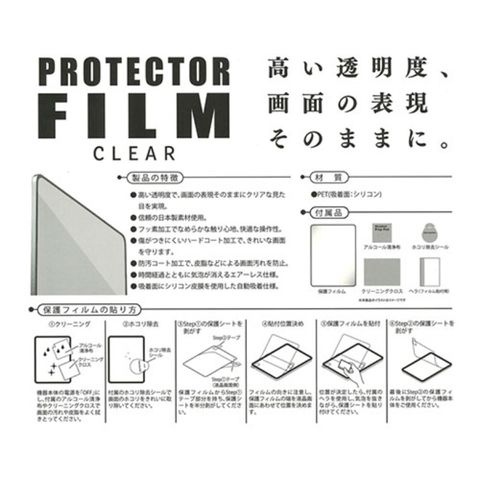 ・付属品 : アルコール洗浄布×1、ホコリ除去シール×1、クリーニングクロス×1、フィルム貼付け用ヘラ×1