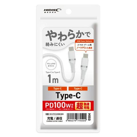 HIDISC やわらかケーブル Type-C to Type-C ホワイト HD-STCC100W1WH 【同梱不可】[▲][AS]