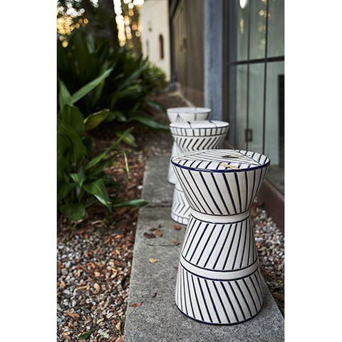 トライバルテイストの陶器製スツール屋外でも使用でき、個性的な柄や形はオブジェとしてもインテリアにマッチします。