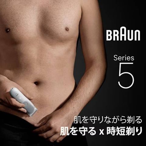優しいトリミングとスムーズなシェービング: ブラウンの男性用ボディグルーマーシリーズ 5 は、デリケートな肌の部分でも快適です。