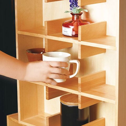 仕切りの一部を明けることで、陳列品が取り出しやすく、