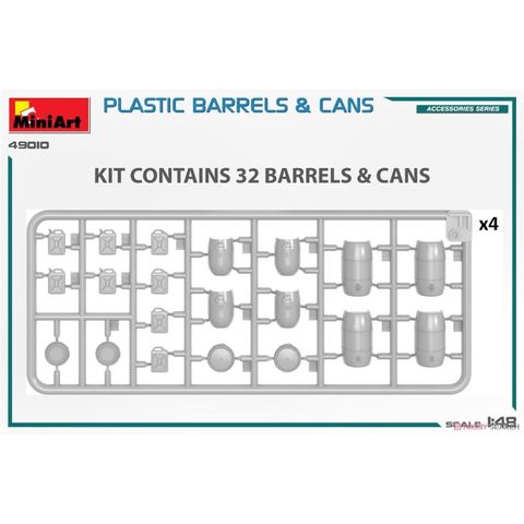 | MA49010 ミニアート 1/48 プラスチックの樽と缶 ジオラマ レイアウト用品 1/48スケールの樽と缶32個セットです。 デカールが付属します。 |