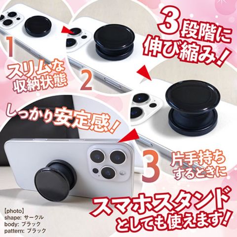 お手持ちのスマホ背面に取りつけて、片手で安全に使えるようにするスマホグリップ!