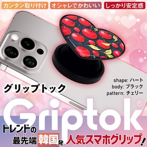 Griptok グリップトック 2025モデル 韓国発スマホグリップ しっかり安定 スマホスタンド ハート チェリー 33GRHTEPBLHT12 【同梱不可】[▲][AS]