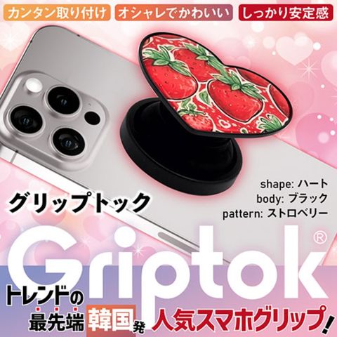 Griptok グリップトック 2025モデル 韓国発スマホグリップ しっかり安定 スマホスタンド ハート ストロベリー 33GRHTEPBLHT13 【同梱不可】[▲][AS]