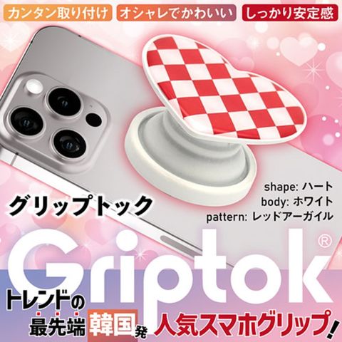 Griptok グリップトック 2025モデル 韓国発スマホグリップ しっかり安定 スマホスタンド ハート レッドアーガイル 33GRHTEPWHHT20 【同梱不可】[▲][AS]