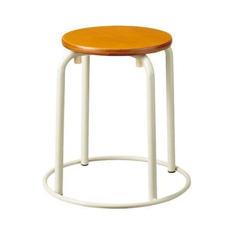 積み重ねができる木製座面の丸スツール/座面高420mm。脚元リング付。安定して作業が行える足置きリングが付いています。