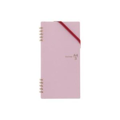このサイズを持っていた!A4×1/3サイズノート、カ.クリエ!片手におさまるA4×1/3サイズ。コンパクトなので手軽に持ち歩くことができ、ビジネスユースにもピッタリです。議事録、図面、アイデアメモなど、いろいろな用途に使いやすい淡いグリーンの5mm方眼です。書き心地がなめらかなクリーム色の中紙を使用。ノートサイズはA4用紙を三つ折りにしたサイズよりも一回り大きめ。しっかり折りたためて持ちやすい。中央にリングがないため、書く際に手がリングにあたりづらく書きやすい!表紙の色にあわせたポケット付。