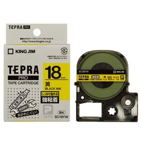 まとめ買い キングジム テプラ PRO テープカートリッジ 強粘着 18mm 黄/黒文字 SC18YW 1個 【×4セット】 【同梱不可】【代引不可】[▲][TP]