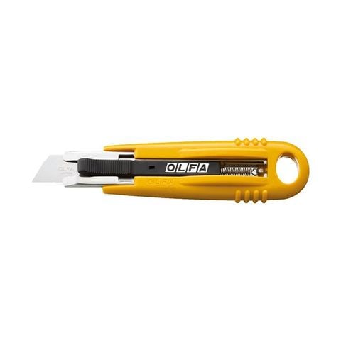 スプリングで刃が自動的に戻る、安全性の高い開梱用カッターです。