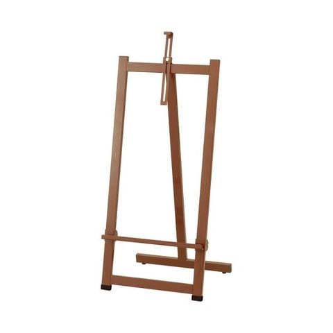 ●上下スライド式、高さ調節が可能なボードストッパーがついたモカのスチールイーゼル。