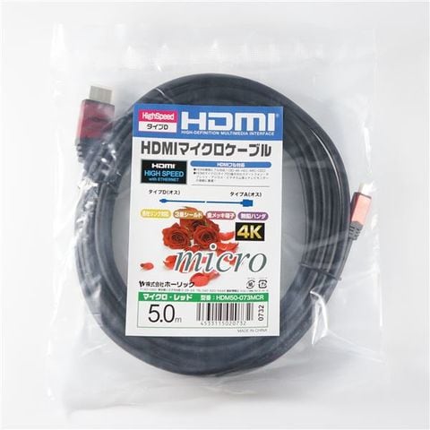 HORIC(ホーリック) HDMIマイクロケーブル 5m レッド HDM50-073MCR【同梱不可】【代引不可】[▲][TP]