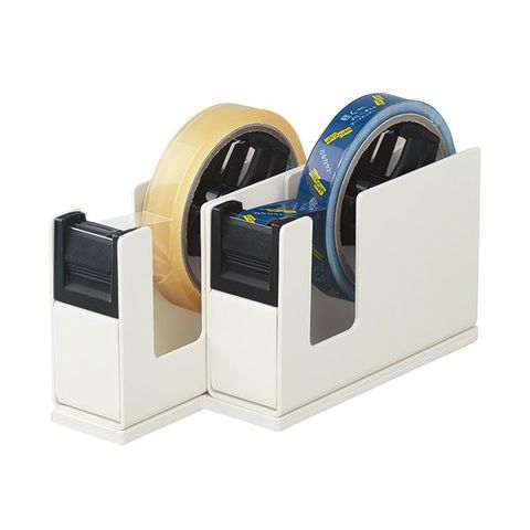 ●2種類のテープがセット可能な、ライトグレーのテープカッター