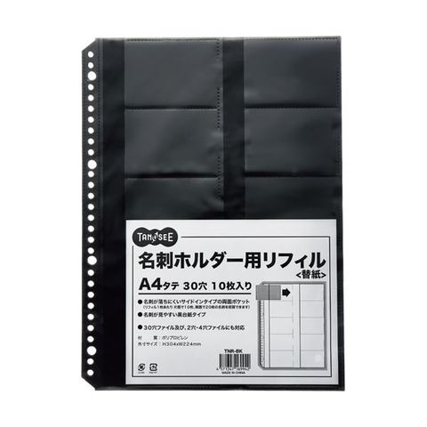 まとめ買い TANOSEE 名刺ホルダー用リフィルA4タテ 2・4・30穴 ブラック 1パック(10枚) ×50セット 生活用品 インテリア 雑貨 文具 オフィス用品 【同梱不可】【代引不可】[▲][TP]