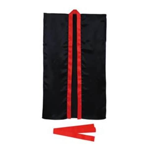 ・ソフトサテンロングハッピ L 黒/赤襟 (ハチマキ付)
