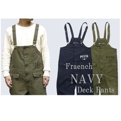 第二次世界大戦で壊滅したフランス海軍は戦後アメリカ、イギリス軍の援助で再編され、艦艇の他、被服類も供与されました。その中には、デッキパンツも含まれていました。高い防寒性と機能性をもったこれらの被服はフランス海軍将兵にも好評で、供与と製造が終了した1960年代からフランス軍によってコピー生産され、初期型はカーキ、70年代の後期型にはオリーブグリーンで製造され、フランス海軍のデッキパンツのデザインに大きな影響を与えました。弊社の製品は内側のライナーを廃止し、タウンユースで履けるように仕様変更しています。裾幅調整用にドローコードが付いています。左胸にフランス海軍の紋章がカスレプリントされ、ミリタリームードとビンテージムードを表現しています。前立ては、ボタンとジッパーの比翼式で風の巻き込みを防ぎます。ポケットはフロントにボタン蓋付きポケットが2ヶ所、ヒップにオープンポケットが2ヶ所付いています。