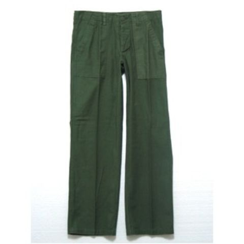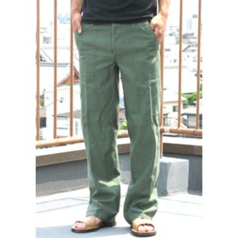 ファティーグパンツは1940年代後半より米陸軍にて採用され、1990年代まで使用されたミリタリーパンツを代表する作業パンツです。1960年代からは、海兵隊や海軍、空軍でも使用されました。生地は40年代から50年代初期はコットンヘリンボーンツイル、60年代はコットンツイル、70年代以降はコットンとポリエステルの混紡へと変更されました。ボタンの形状、ボタンフライからジッパーフライへの変更等、細かな仕様に変更があったものの、基本的なシルエットに変更はなく長期間使用されました。