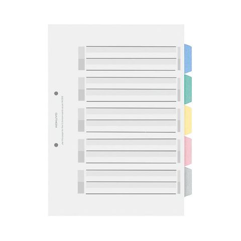 ●A4タテ、5山見出しのカラー仕切カード、5組×5パックのセットです。